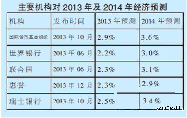 全球經(jīng)濟復(fù)蘇:2014年,全球經(jīng)濟復(fù)蘇勢頭將持續(xù),主要機構(gòu)對2014年經(jīng)濟發(fā)展的預(yù)測表明了這一觀點(見表格)。